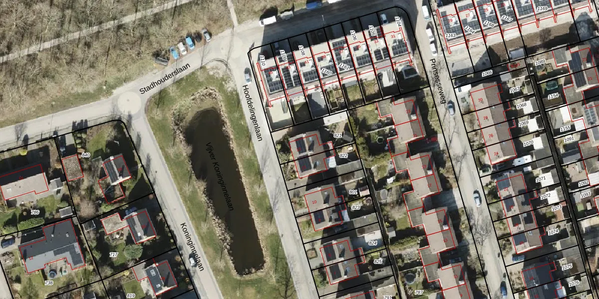 Gebruik de zoekbalk of klik op een perceel voor informatie over de adressen binnen dit perceel.