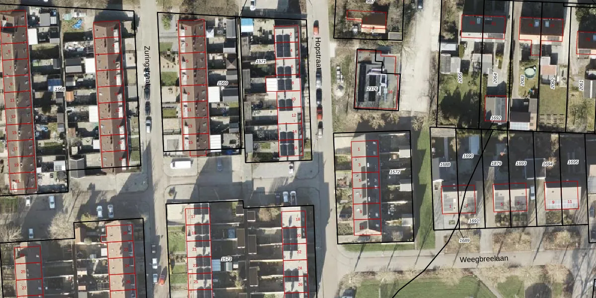 Het perceel waarop Hopstraat 16 staat heeft een oppervlakte van 1071 m². Dit is een zeer groot perceel. De perceeloppervlakte wordt geregistreerd door het Kadaster. Gedetailleerde informatie over de maten van dit perceel kunt u vinden in het rapport Kadastrale kaart met maatvoering van Hopstraat 16.
