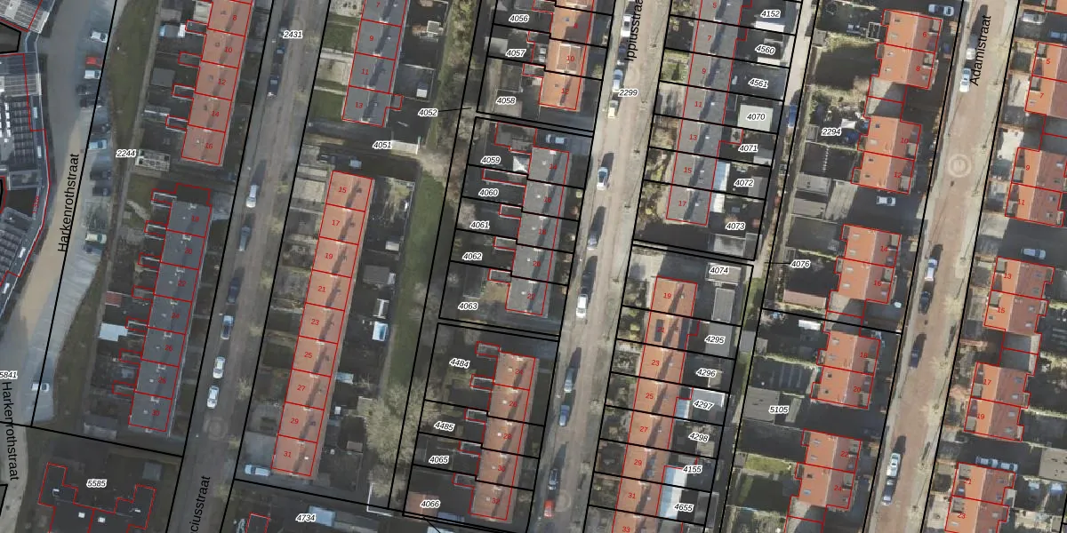Gebruik de zoekbalk of klik op een perceel voor informatie over de adressen binnen dit perceel.