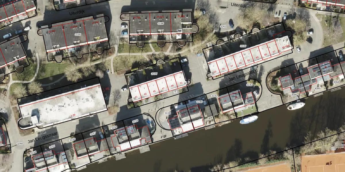 Het perceel waarop Jan Leugsstraat 49 staat heeft een oppervlakte van 700 m². Dit is een groot perceel. De perceeloppervlakte wordt geregistreerd door het Kadaster. Gedetailleerde informatie over de maten van dit perceel kunt u vinden in het rapport Kadastrale kaart met maatvoering van Jan Leugsstraat 49.