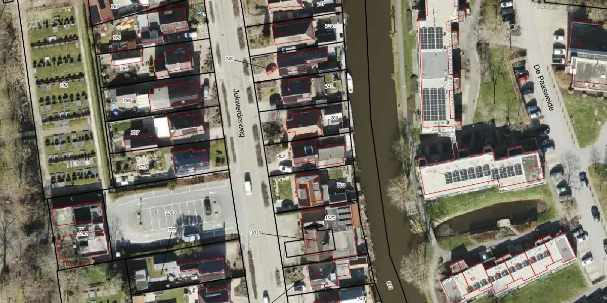 Gebruik de zoekbalk of klik op een perceel voor informatie over de adressen binnen dit perceel.