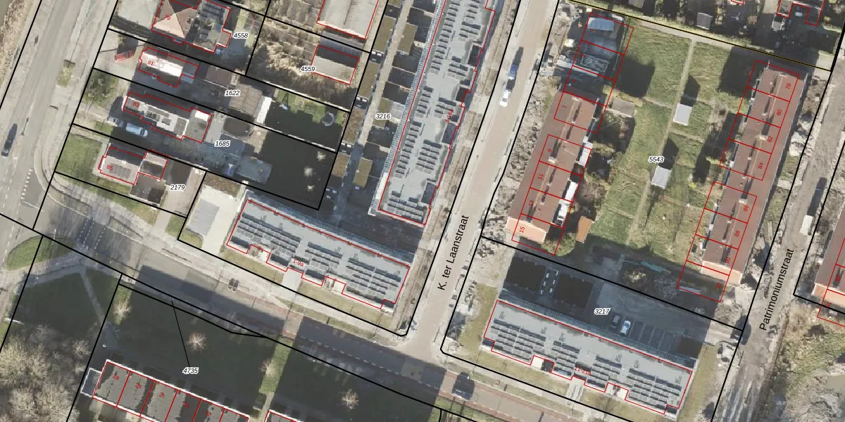 Het perceel waarop K. ter Laanstraat 16 staat heeft een oppervlakte van 3535 m². Dit is een zeer groot perceel. De perceeloppervlakte wordt geregistreerd door het Kadaster. Gedetailleerde informatie over de maten van dit perceel kunt u vinden in het rapport Kadastrale kaart met maatvoering van K. ter Laanstraat 16.