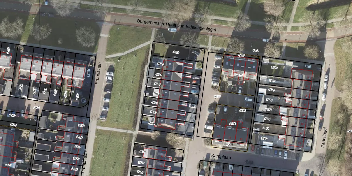 Gebruik de zoekbalk of klik op een perceel voor informatie over de adressen binnen dit perceel.