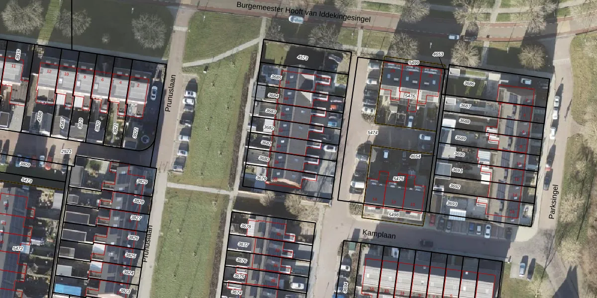 Gebruik de zoekbalk of klik op een perceel voor informatie over de adressen binnen dit perceel.