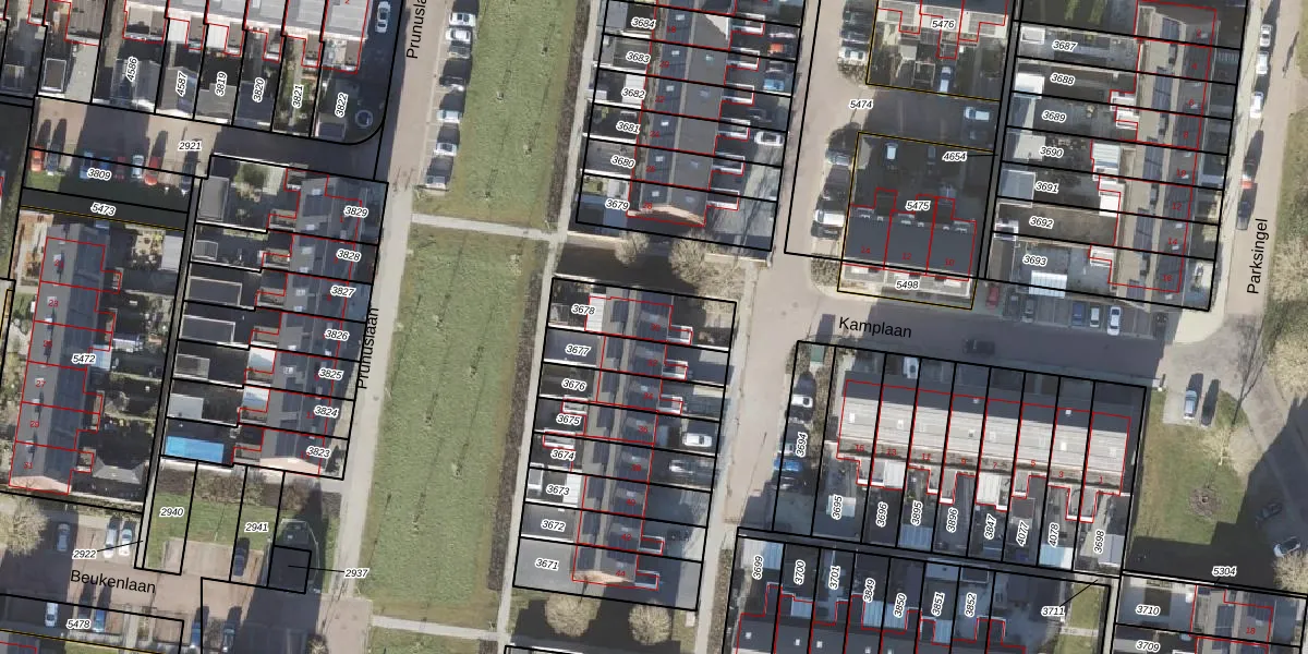 Gebruik de zoekbalk of klik op een perceel voor informatie over de adressen binnen dit perceel.