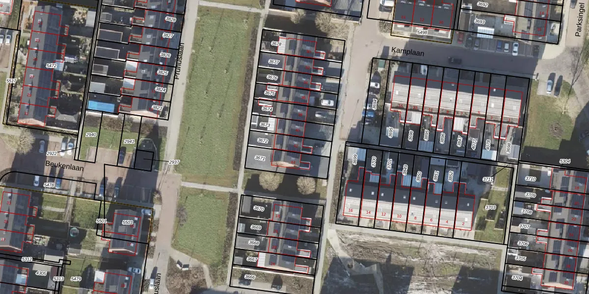 Gebruik de zoekbalk of klik op een perceel voor informatie over de adressen binnen dit perceel.