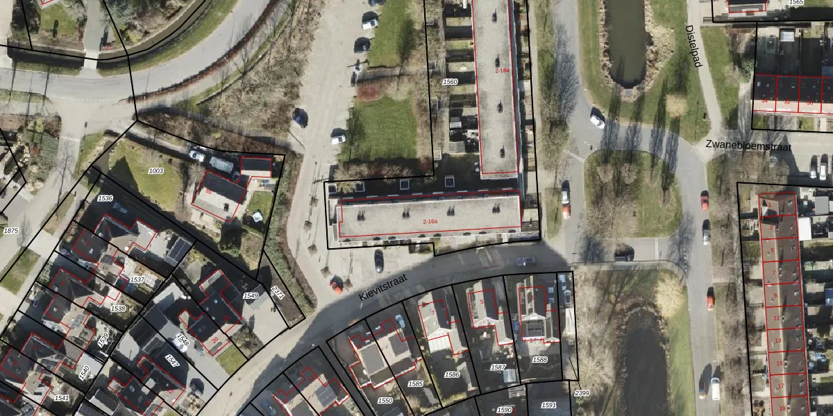 Het perceel waarop Kievitstraat 10-a staat heeft een oppervlakte van 2156 m². Dit is een zeer groot perceel. De perceeloppervlakte wordt geregistreerd door het Kadaster. Gedetailleerde informatie over de maten van dit perceel kunt u vinden in het rapport Kadastrale kaart met maatvoering van Kievitstraat 10-a.