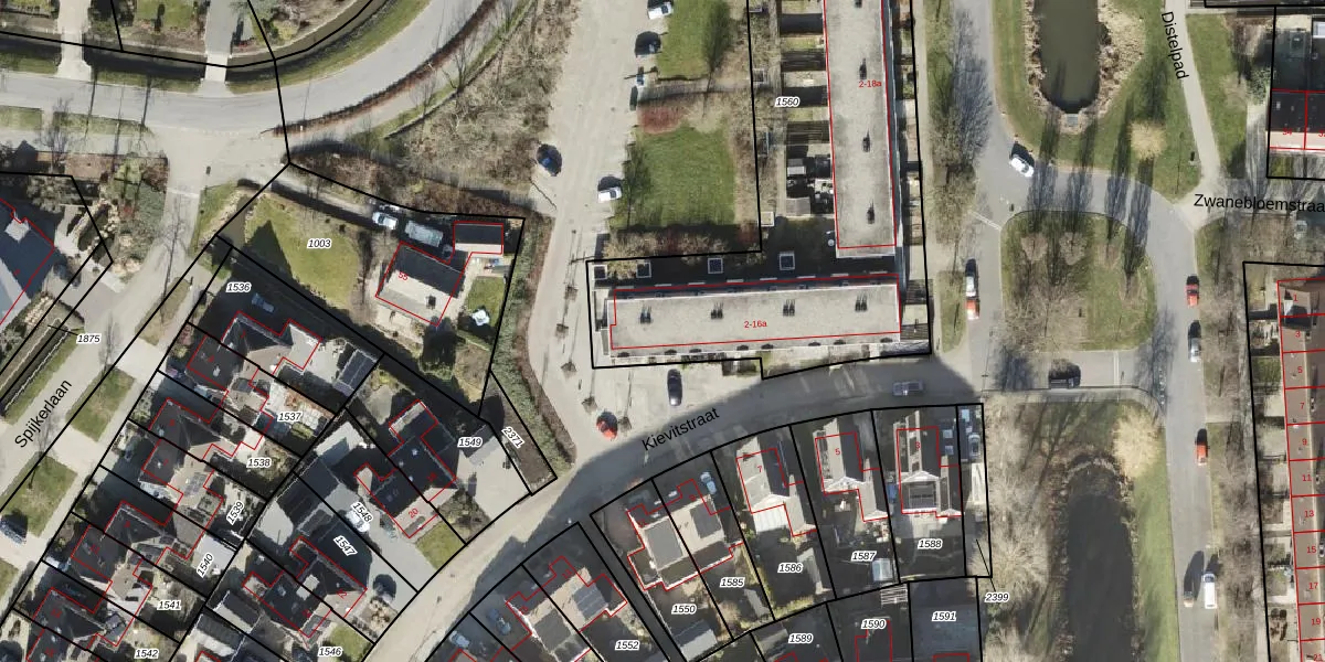 Het perceel waarop Kievitstraat 14 staat heeft een oppervlakte van 2156 m². Dit is een zeer groot perceel. De perceeloppervlakte wordt geregistreerd door het Kadaster. Gedetailleerde informatie over de maten van dit perceel kunt u vinden in het rapport Kadastrale kaart met maatvoering van Kievitstraat 14.