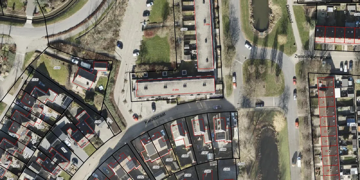 Het perceel waarop Kievitstraat 8 staat heeft een oppervlakte van 2156 m². Dit is een zeer groot perceel. De perceeloppervlakte wordt geregistreerd door het Kadaster. Gedetailleerde informatie over de maten van dit perceel kunt u vinden in het rapport Kadastrale kaart met maatvoering van Kievitstraat 8.