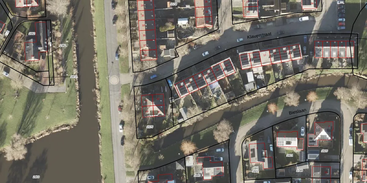 Het perceel waarop Klaverstraat 33 staat heeft een oppervlakte van 2395 m². Dit is een zeer groot perceel. De perceeloppervlakte wordt geregistreerd door het Kadaster. Gedetailleerde informatie over de maten van dit perceel kunt u vinden in het rapport Kadastrale kaart met maatvoering van Klaverstraat 33.