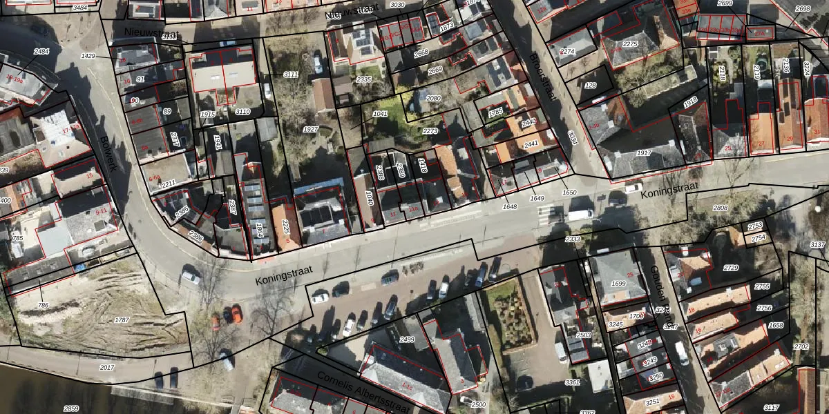 Gebruik de zoekbalk of klik op een perceel voor informatie over de adressen binnen dit perceel.