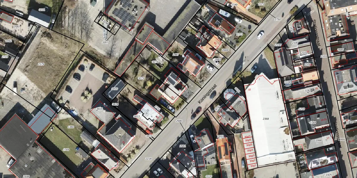 Het perceel waarop Koningstraat 57 staat heeft een oppervlakte van 465 m². Dit is een groot perceel. De perceeloppervlakte wordt geregistreerd door het Kadaster. Gedetailleerde informatie over de maten van dit perceel kunt u vinden in het rapport Kadastrale kaart met maatvoering van Koningstraat 57.