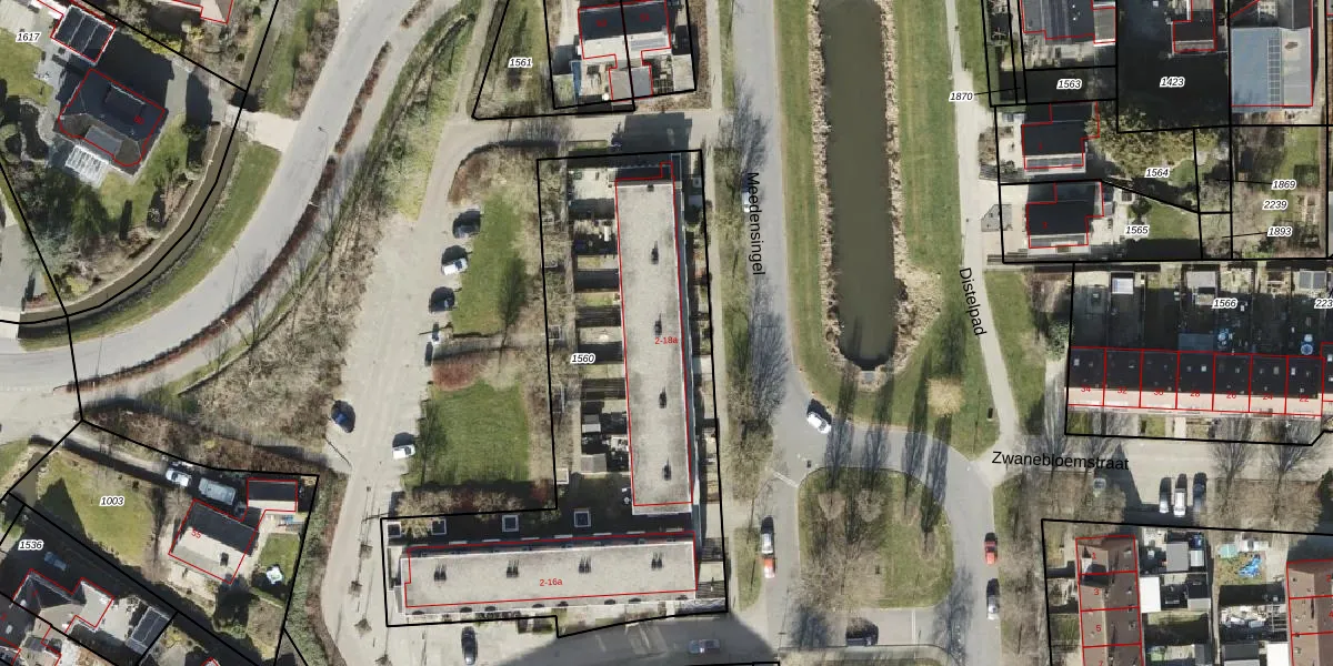 Het perceel waarop Meedensingel 10 staat heeft een oppervlakte van 2156 m². Dit is een zeer groot perceel. De perceeloppervlakte wordt geregistreerd door het Kadaster. Gedetailleerde informatie over de maten van dit perceel kunt u vinden in het rapport Kadastrale kaart met maatvoering van Meedensingel 10.