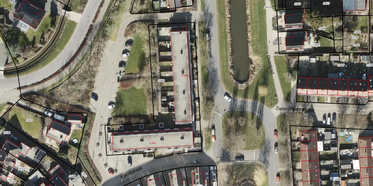 Het perceel waarop Meedensingel 14 staat heeft een oppervlakte van 2156 m². Dit is een zeer groot perceel. De perceeloppervlakte wordt geregistreerd door het Kadaster. Gedetailleerde informatie over de maten van dit perceel kunt u vinden in het rapport Kadastrale kaart met maatvoering van Meedensingel 14.