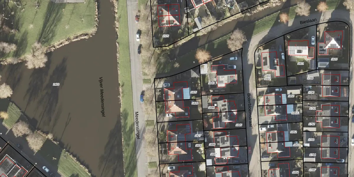 Het perceel waarop Meedensingel 45 staat heeft een oppervlakte van 394 m². Dit is een groot perceel. De perceeloppervlakte wordt geregistreerd door het Kadaster. Gedetailleerde informatie over de maten van dit perceel kunt u vinden in het rapport Kadastrale kaart met maatvoering van Meedensingel 45.