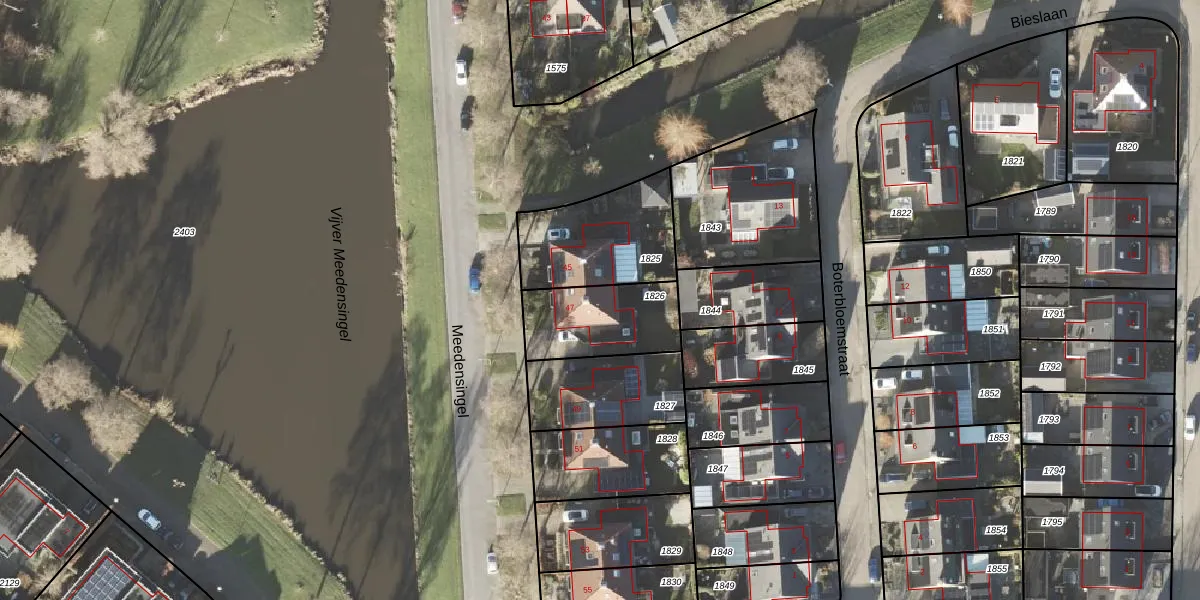 Het perceel waarop Meedensingel 47 staat heeft een oppervlakte van 307 m². Dit is een groot perceel. De perceeloppervlakte wordt geregistreerd door het Kadaster. Gedetailleerde informatie over de maten van dit perceel kunt u vinden in het rapport Kadastrale kaart met maatvoering van Meedensingel 47.