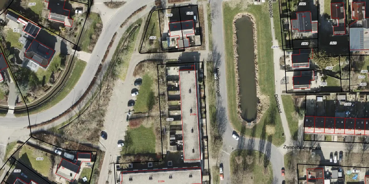 Het perceel waarop Meedensingel 6-a staat heeft een oppervlakte van 2156 m². Dit is een zeer groot perceel. De perceeloppervlakte wordt geregistreerd door het Kadaster. Gedetailleerde informatie over de maten van dit perceel kunt u vinden in het rapport Kadastrale kaart met maatvoering van Meedensingel 6-a.