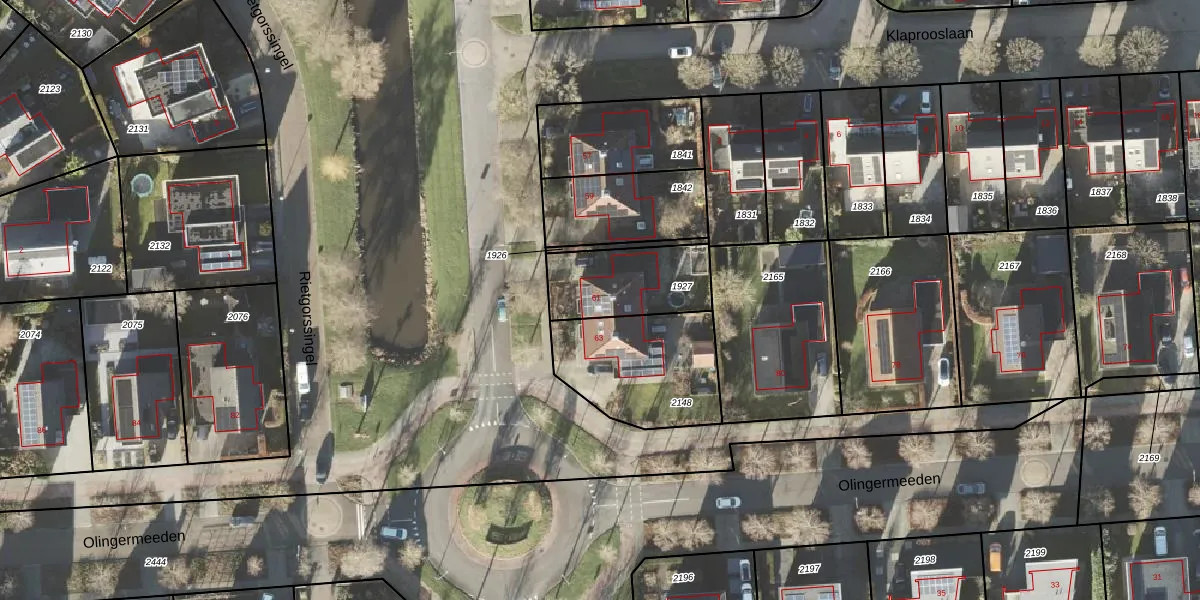 Gebruik de zoekbalk of klik op een perceel voor informatie over de adressen binnen dit perceel.