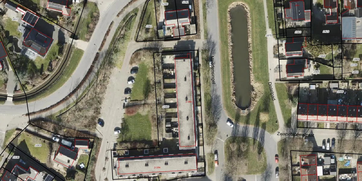 Het perceel waarop Meedensingel 8-a staat heeft een oppervlakte van 2156 m². Dit is een zeer groot perceel. De perceeloppervlakte wordt geregistreerd door het Kadaster. Gedetailleerde informatie over de maten van dit perceel kunt u vinden in het rapport Kadastrale kaart met maatvoering van Meedensingel 8-a.