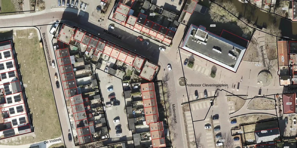 Het perceel waarop Molenstraat 17 staat heeft een oppervlakte van 3904 m². Dit is een zeer groot perceel. De perceeloppervlakte wordt geregistreerd door het Kadaster. Gedetailleerde informatie over de maten van dit perceel kunt u vinden in het rapport Kadastrale kaart met maatvoering van Molenstraat 17.