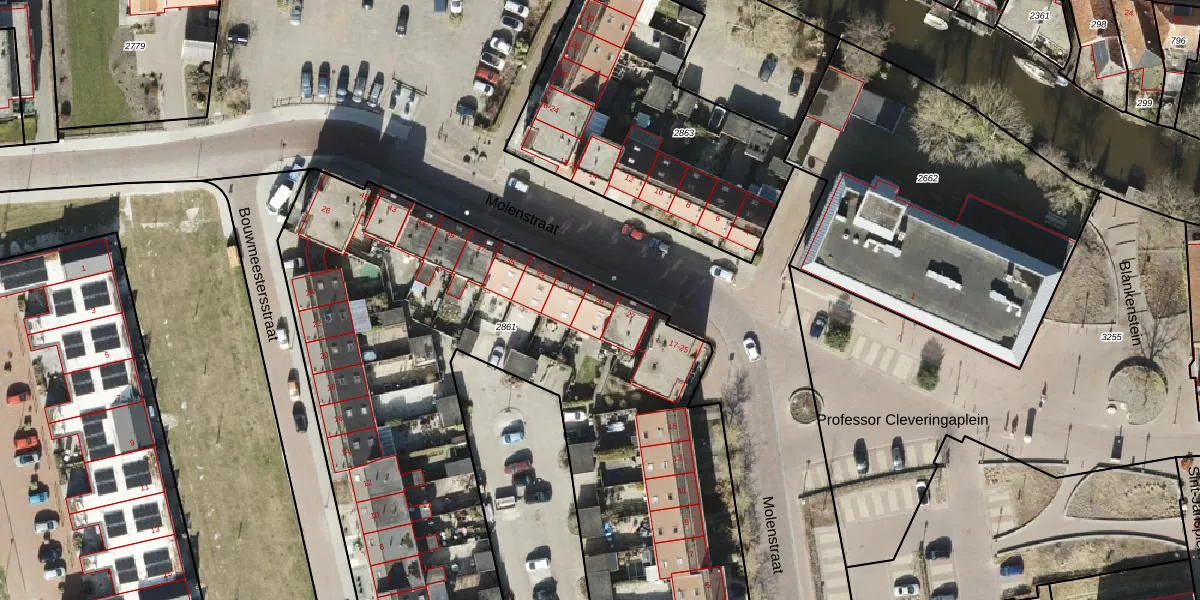 Het perceel waarop Molenstraat 29 staat heeft een oppervlakte van 3904 m². Dit is een zeer groot perceel. De perceeloppervlakte wordt geregistreerd door het Kadaster. Gedetailleerde informatie over de maten van dit perceel kunt u vinden in het rapport Kadastrale kaart met maatvoering van Molenstraat 29.
