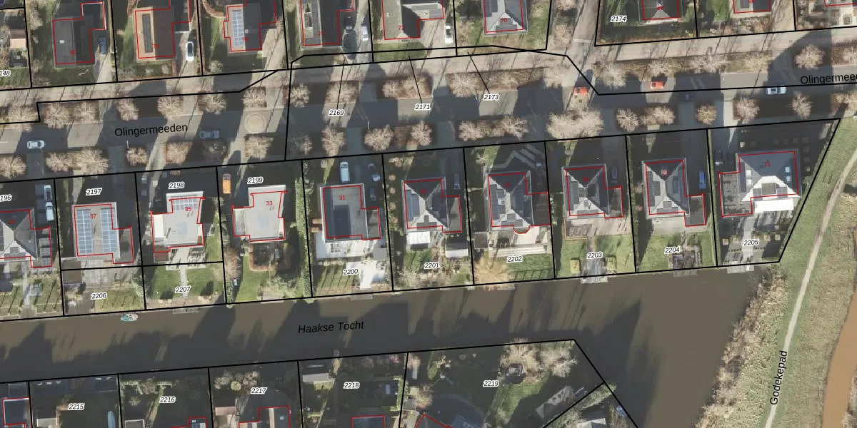 Olingermeeden 29 is gelegen op kadastraal perceel APG00H2201. Deze kadastrale aanduiding is uniek en wordt gebruikt door het Kadaster om eigendomsrechten en andere zakelijke rechten vast te leggen. Het perceel maakt onderdeel uit van de kadastrale gemeente Appingedam.