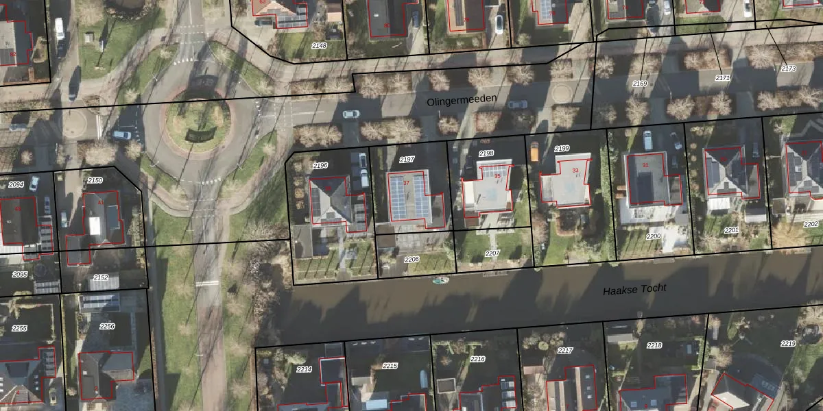 Olingermeeden 37 is gelegen op kadastraal perceel APG00H2197. Deze kadastrale aanduiding is uniek en wordt gebruikt door het Kadaster om eigendomsrechten en andere zakelijke rechten vast te leggen. Het perceel maakt onderdeel uit van de kadastrale gemeente Appingedam.