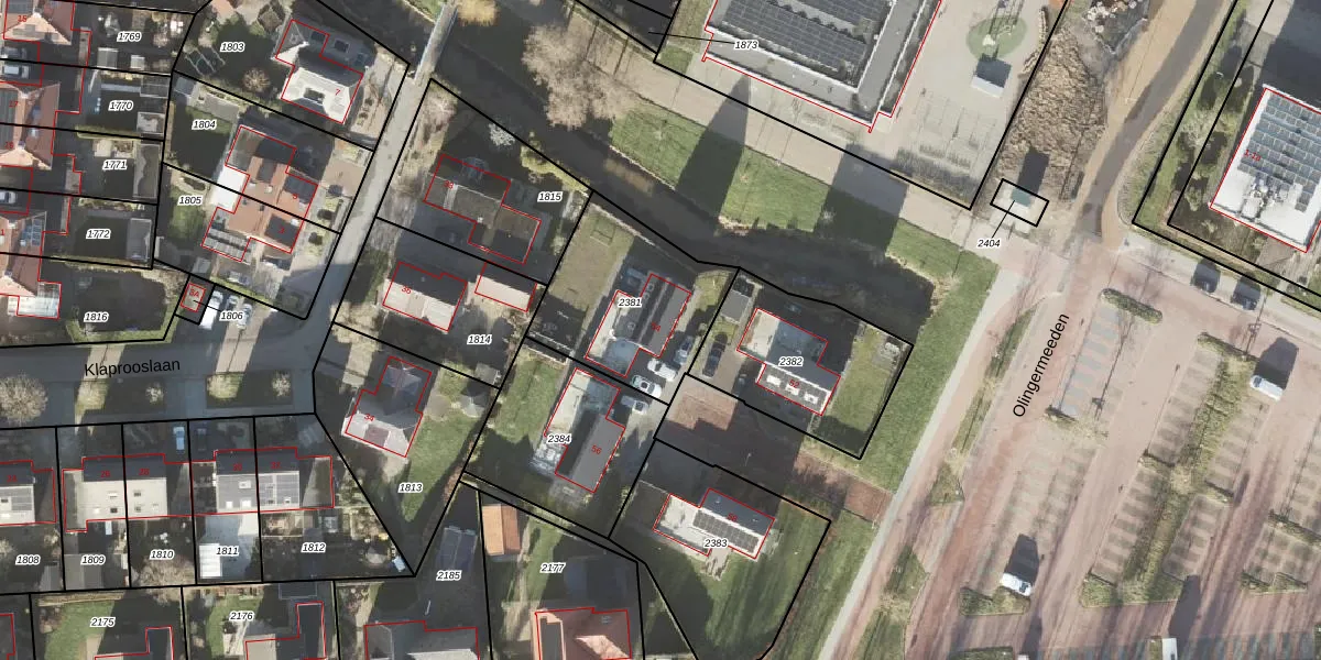 Het perceel waarop Olingermeeden 54 staat heeft een oppervlakte van 566 m². Dit is een groot perceel. De perceeloppervlakte wordt geregistreerd door het Kadaster. Gedetailleerde informatie over de maten van dit perceel kunt u vinden in het rapport Kadastrale kaart met maatvoering van Olingermeeden 54.