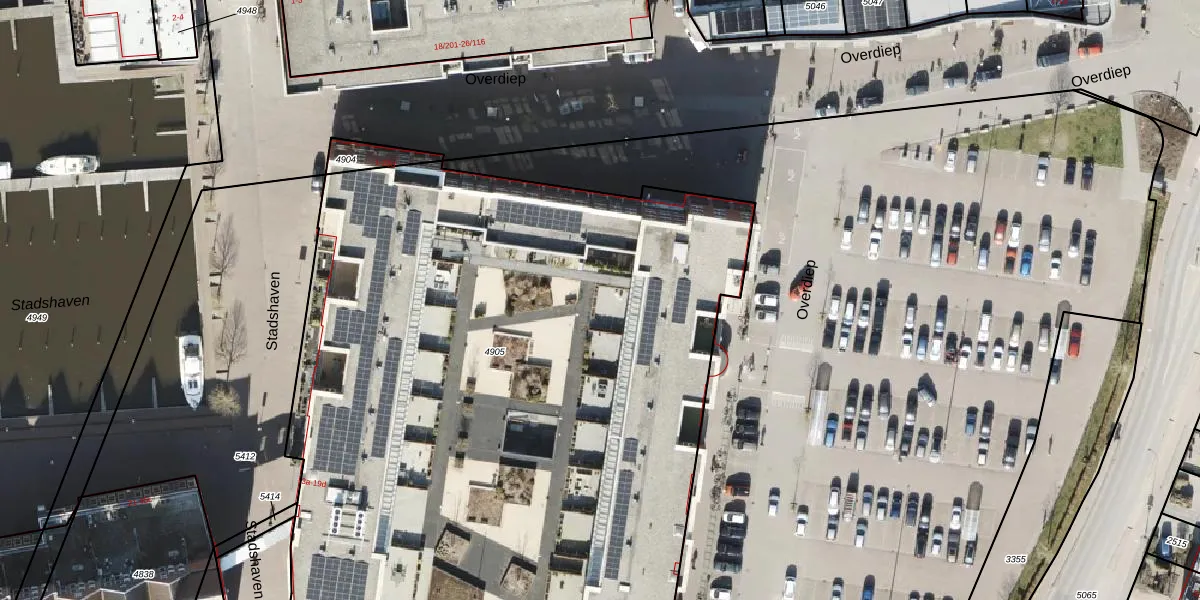 Overdiep 23-b is gelegen op kadastraal perceel APG00G4905. Deze kadastrale aanduiding is uniek en wordt gebruikt door het Kadaster om eigendomsrechten en andere zakelijke rechten vast te leggen. Het perceel maakt onderdeel uit van de kadastrale gemeente Appingedam.