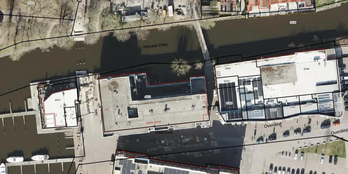 Overdiep 26-006 is gelegen op kadastraal perceel APG00G4952. Deze kadastrale aanduiding is uniek en wordt gebruikt door het Kadaster om eigendomsrechten en andere zakelijke rechten vast te leggen. Het perceel maakt onderdeel uit van de kadastrale gemeente Appingedam.
