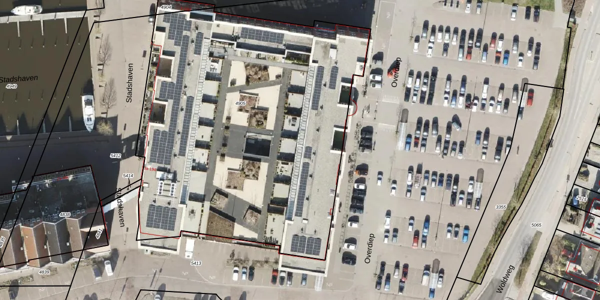 Overdiep 5-b is gelegen op kadastraal perceel APG00G4905. Deze kadastrale aanduiding is uniek en wordt gebruikt door het Kadaster om eigendomsrechten en andere zakelijke rechten vast te leggen. Het perceel maakt onderdeel uit van de kadastrale gemeente Appingedam.