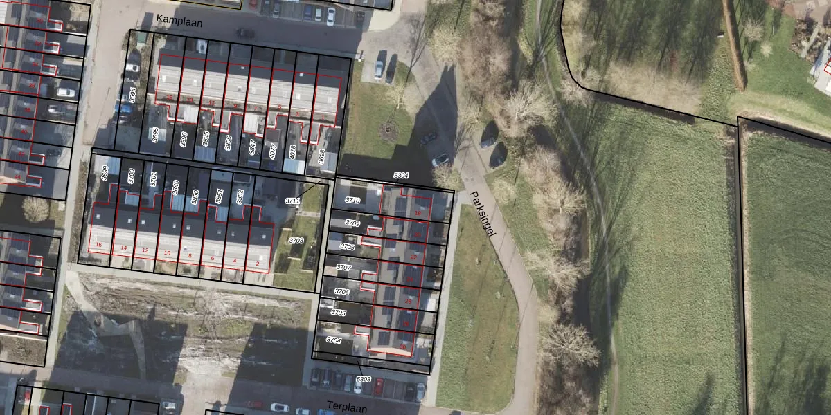 Gebruik de zoekbalk of klik op een perceel voor informatie over de adressen binnen dit perceel.