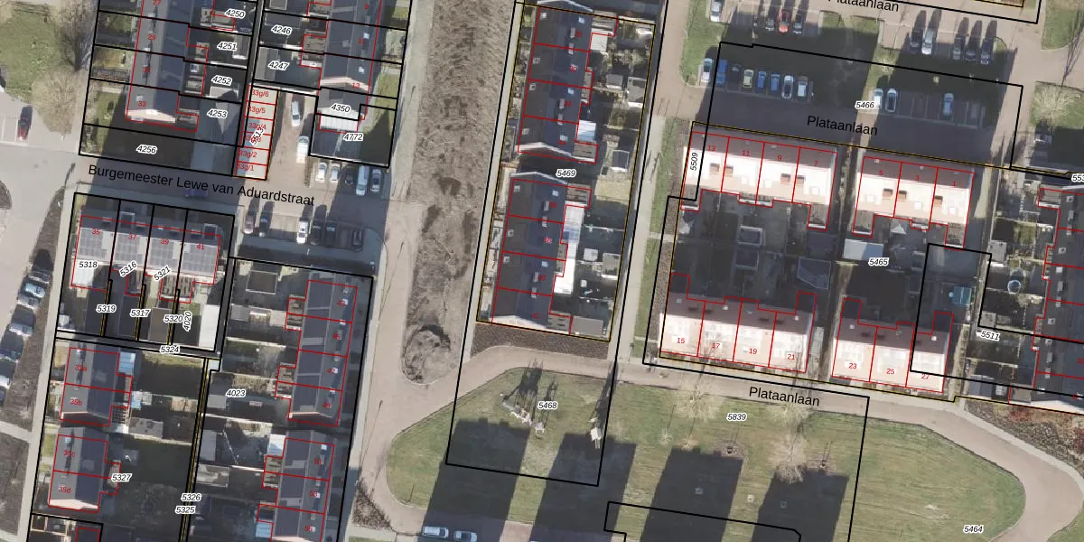 Plataanlaan 40 is gelegen op kadastraal perceel APG00G5469. Deze kadastrale aanduiding is uniek en wordt gebruikt door het Kadaster om eigendomsrechten en andere zakelijke rechten vast te leggen. Het perceel maakt onderdeel uit van de kadastrale gemeente Appingedam.