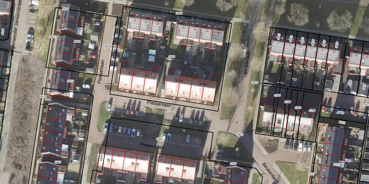 Het perceel waarop Plataanlaan 6 staat heeft een oppervlakte van 2411 m². Dit is een zeer groot perceel. De perceeloppervlakte wordt geregistreerd door het Kadaster. Gedetailleerde informatie over de maten van dit perceel kunt u vinden in het rapport Kadastrale kaart met maatvoering van Plataanlaan 6.
