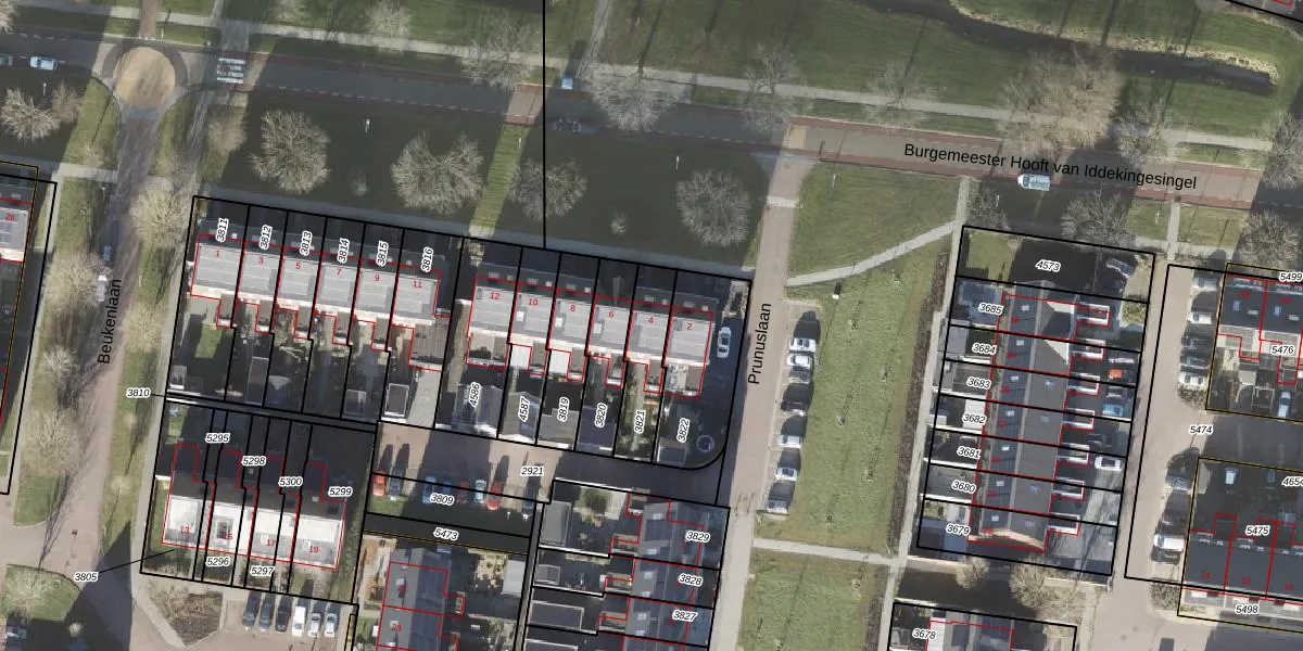 Gebruik de zoekbalk of klik op een perceel voor informatie over de adressen binnen dit perceel.