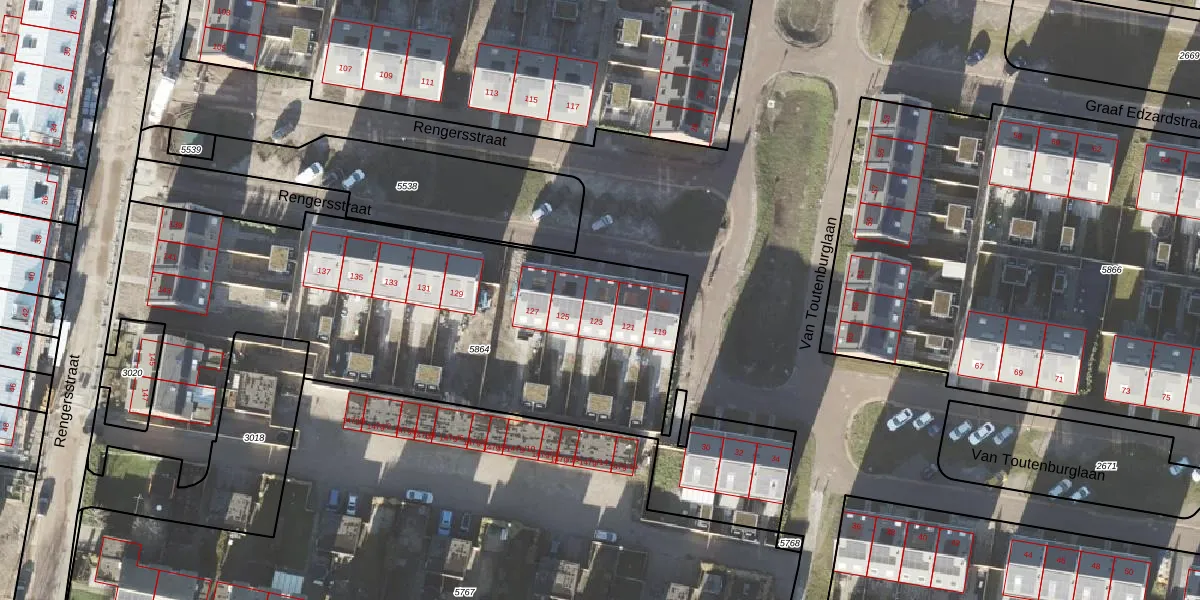 Het perceel waarop Rengersstraat 123 staat heeft een oppervlakte van 3018 m². Dit is een zeer groot perceel. De perceeloppervlakte wordt geregistreerd door het Kadaster. Gedetailleerde informatie over de maten van dit perceel kunt u vinden in het rapport Kadastrale kaart met maatvoering van Rengersstraat 123.