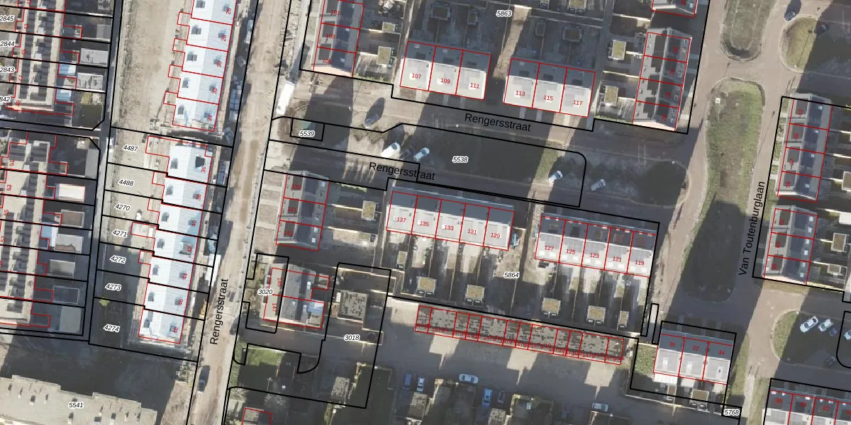 Het perceel waarop Rengersstraat 135 staat heeft een oppervlakte van 3018 m². Dit is een zeer groot perceel. De perceeloppervlakte wordt geregistreerd door het Kadaster. Gedetailleerde informatie over de maten van dit perceel kunt u vinden in het rapport Kadastrale kaart met maatvoering van Rengersstraat 135.
