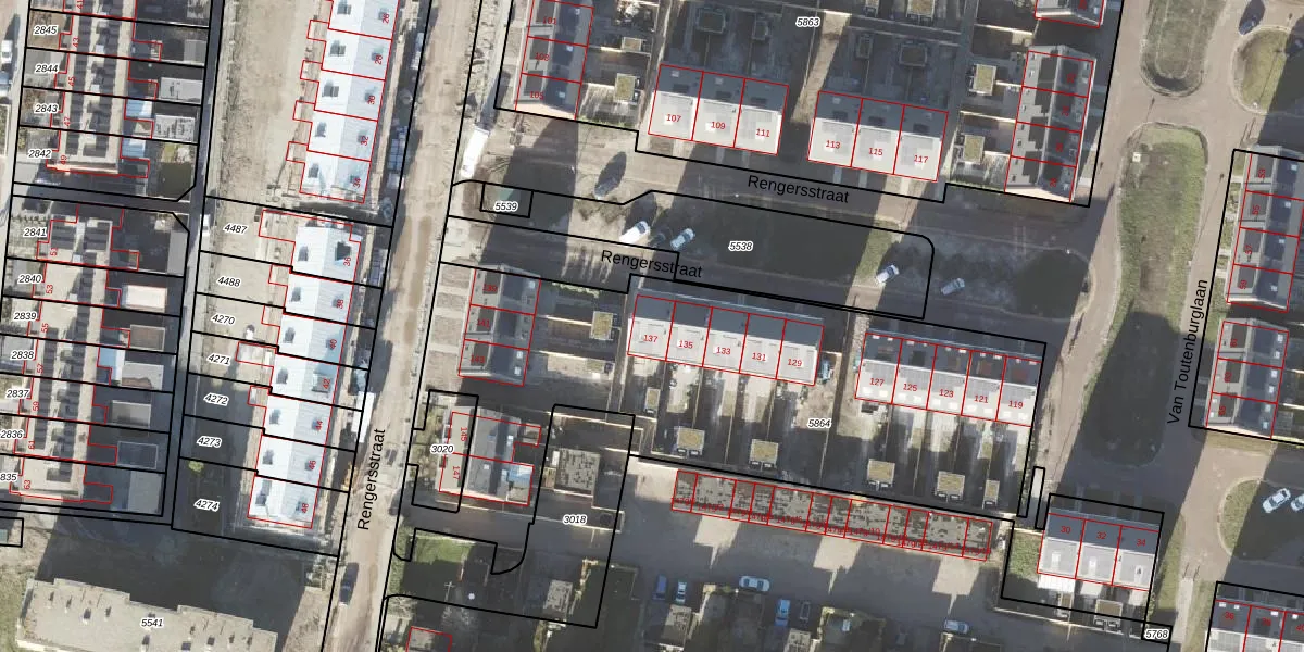 Het perceel waarop Rengersstraat 137 staat heeft een oppervlakte van 3018 m². Dit is een zeer groot perceel. De perceeloppervlakte wordt geregistreerd door het Kadaster. Gedetailleerde informatie over de maten van dit perceel kunt u vinden in het rapport Kadastrale kaart met maatvoering van Rengersstraat 137.