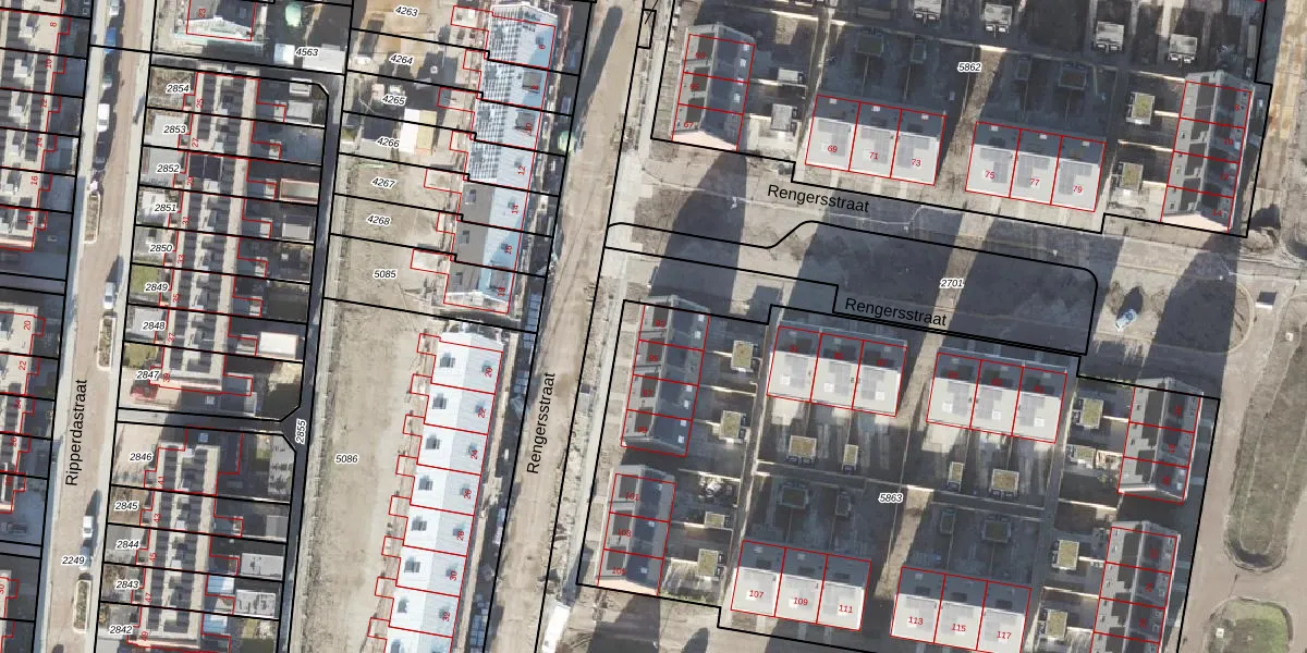 Het perceel waarop Rengersstraat 93 staat heeft een oppervlakte van 4354 m². Dit is een zeer groot perceel. De perceeloppervlakte wordt geregistreerd door het Kadaster. Gedetailleerde informatie over de maten van dit perceel kunt u vinden in het rapport Kadastrale kaart met maatvoering van Rengersstraat 93.