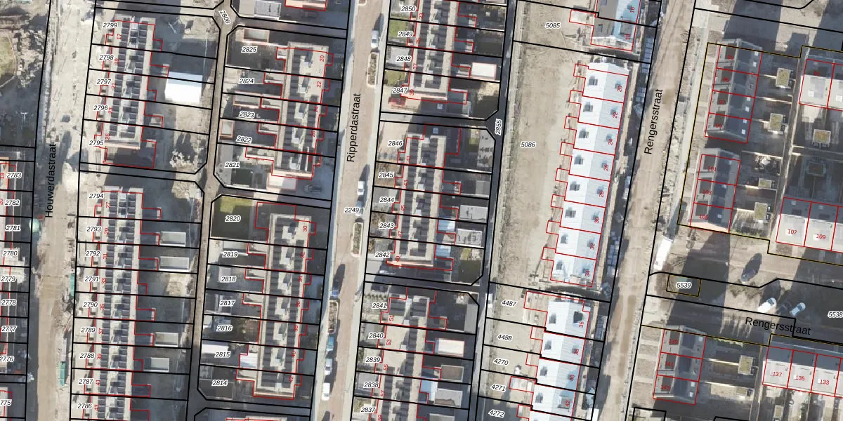 Gebruik de zoekbalk of klik op een perceel voor informatie over de adressen binnen dit perceel.