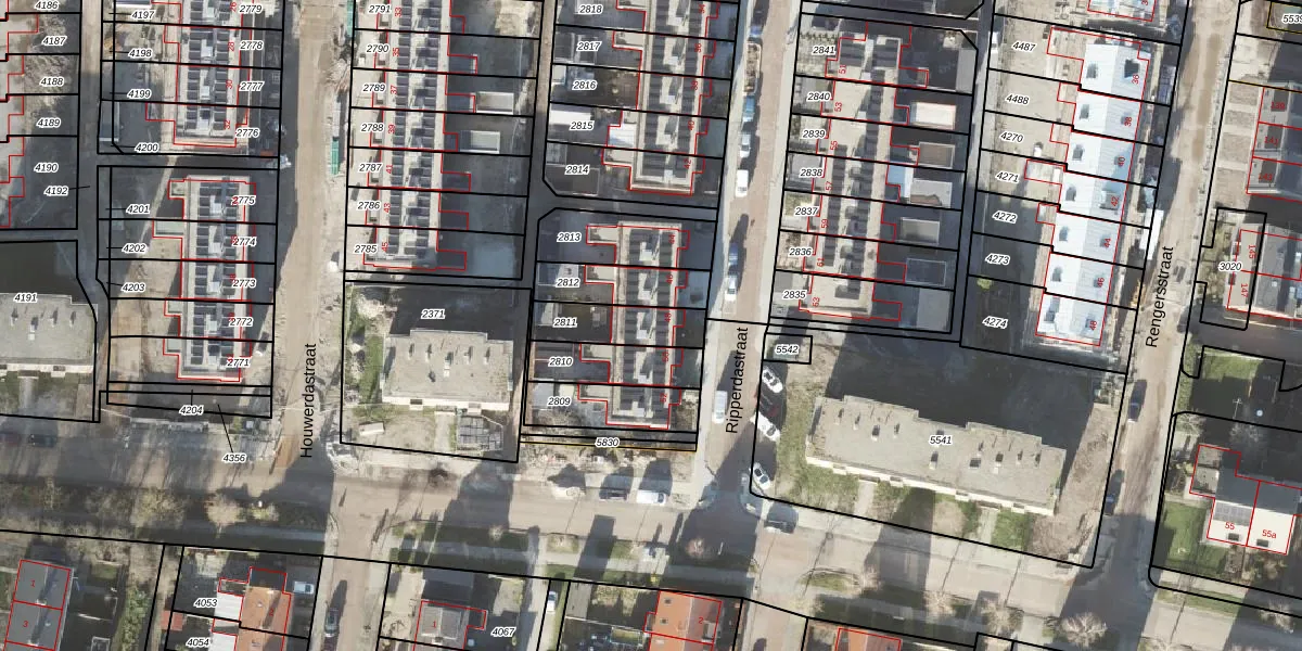 Gebruik de zoekbalk of klik op een perceel voor informatie over de adressen binnen dit perceel.