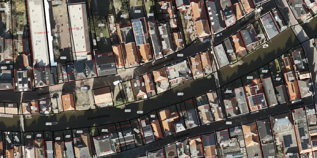 Solwerderstraat 30 is gelegen op kadastraal perceel APG00D2823. Deze kadastrale aanduiding is uniek en wordt gebruikt door het Kadaster om eigendomsrechten en andere zakelijke rechten vast te leggen. Het perceel maakt onderdeel uit van de kadastrale gemeente Appingedam.