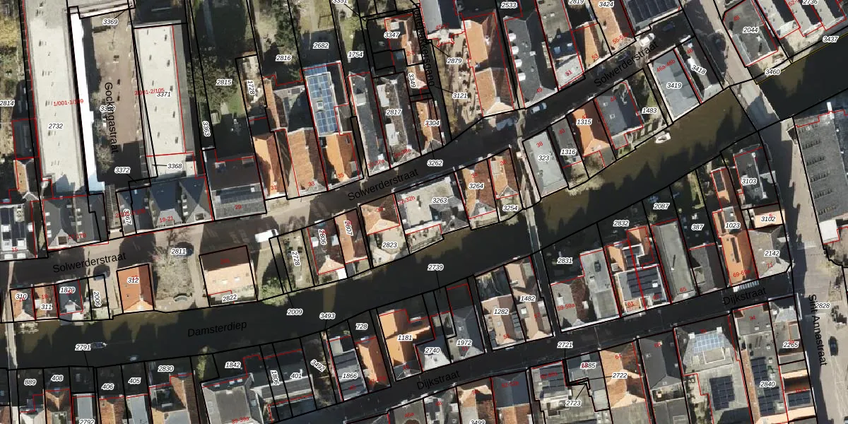 Solwerderstraat 32-f is gelegen op kadastraal perceel APG00D3263. Deze kadastrale aanduiding is uniek en wordt gebruikt door het Kadaster om eigendomsrechten en andere zakelijke rechten vast te leggen. Het perceel maakt onderdeel uit van de kadastrale gemeente Appingedam.