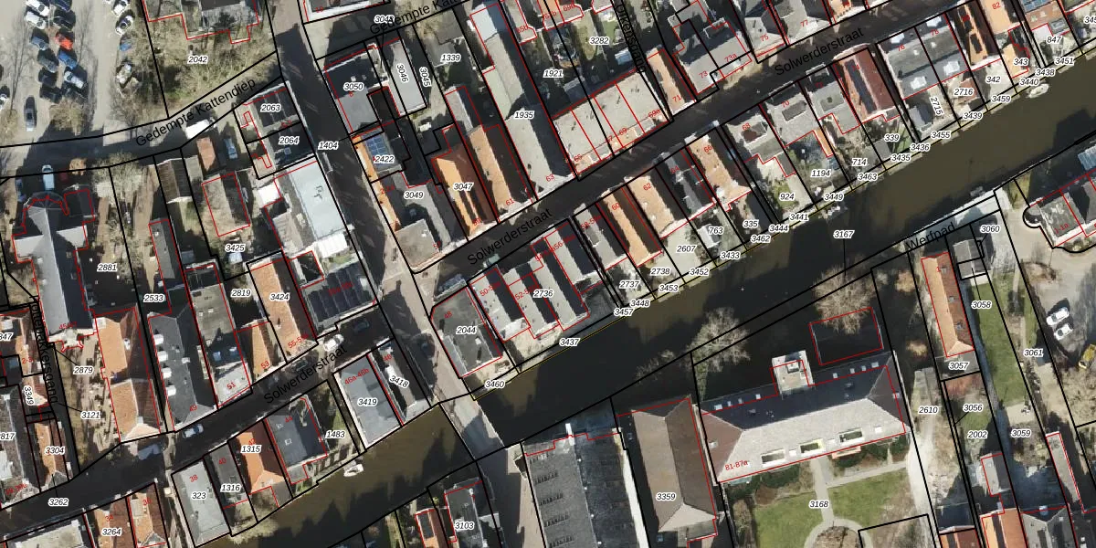 Solwerderstraat 54 is gelegen op kadastraal perceel APG00D2736. Deze kadastrale aanduiding is uniek en wordt gebruikt door het Kadaster om eigendomsrechten en andere zakelijke rechten vast te leggen. Het perceel maakt onderdeel uit van de kadastrale gemeente Appingedam.