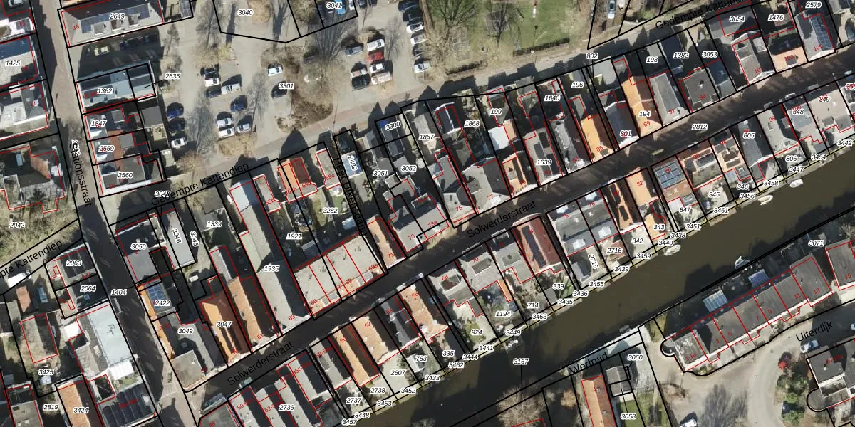 Gebruik de zoekbalk of klik op een perceel voor informatie over de adressen binnen dit perceel.