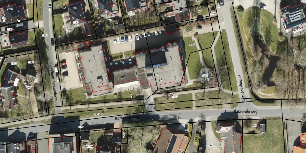 Het perceel waarop Solwerderweg 5-013 staat heeft een oppervlakte van 2625 m². Dit is een zeer groot perceel. De perceeloppervlakte wordt geregistreerd door het Kadaster. Gedetailleerde informatie over de maten van dit perceel kunt u vinden in het rapport Kadastrale kaart met maatvoering van Solwerderweg 5-013.