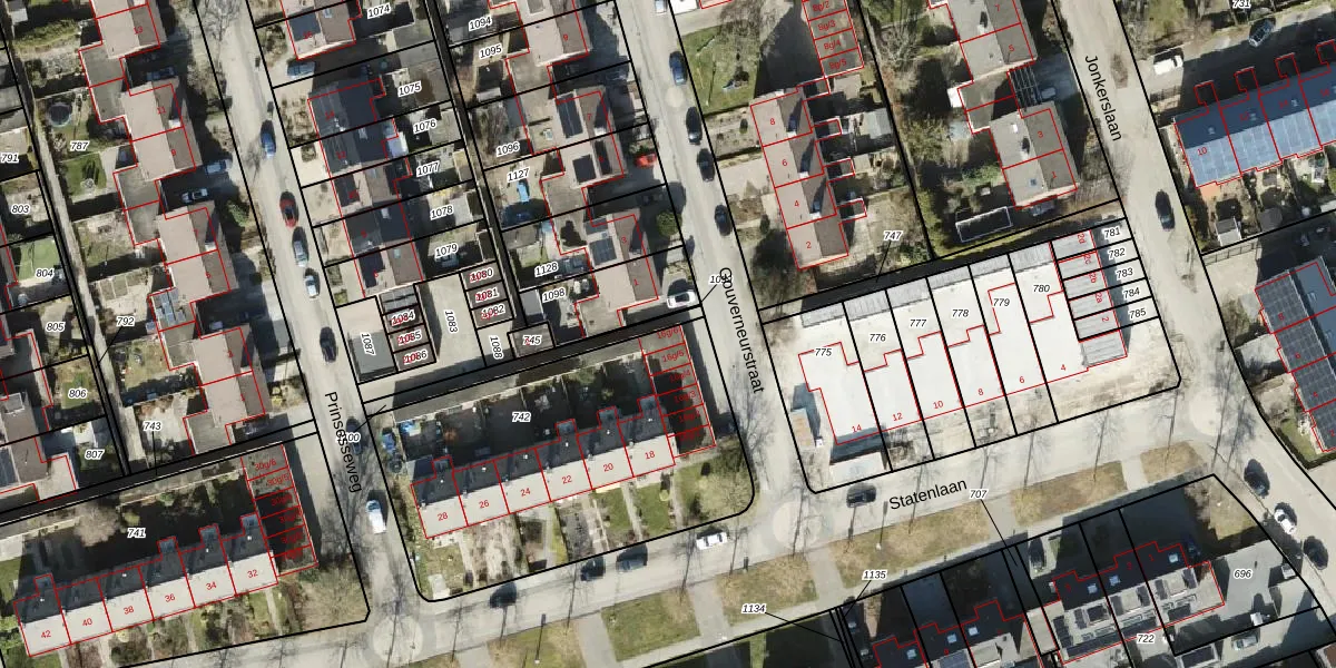 Het perceel waarop Statenlaan 16-g-6 staat heeft een oppervlakte van 1547 m². Dit is een zeer groot perceel. De perceeloppervlakte wordt geregistreerd door het Kadaster. Gedetailleerde informatie over de maten van dit perceel kunt u vinden in het rapport Kadastrale kaart met maatvoering van Statenlaan 16-g-6.