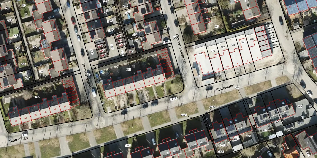 Het perceel waarop Statenlaan 18 staat heeft een oppervlakte van 1547 m². Dit is een zeer groot perceel. De perceeloppervlakte wordt geregistreerd door het Kadaster. Gedetailleerde informatie over de maten van dit perceel kunt u vinden in het rapport Kadastrale kaart met maatvoering van Statenlaan 18.