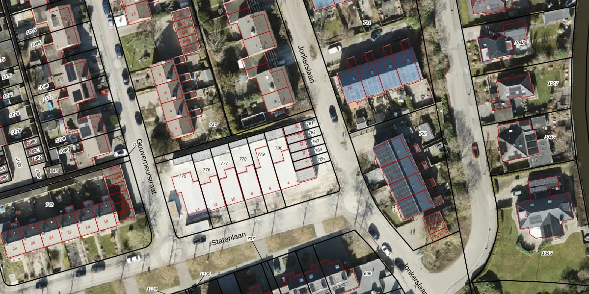 Gebruik de zoekbalk of klik op een perceel voor informatie over de adressen binnen dit perceel.