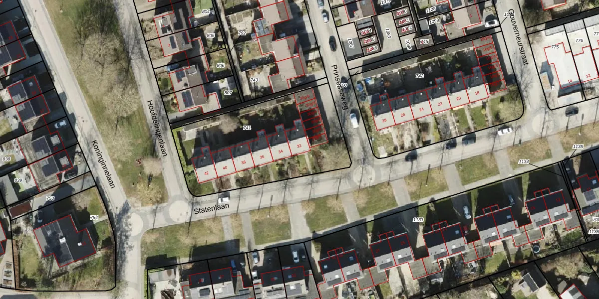 Het perceel waarop Statenlaan 32 staat heeft een oppervlakte van 1460 m². Dit is een zeer groot perceel. De perceeloppervlakte wordt geregistreerd door het Kadaster. Gedetailleerde informatie over de maten van dit perceel kunt u vinden in het rapport Kadastrale kaart met maatvoering van Statenlaan 32.